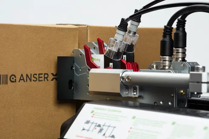 Mensaje de impresión de alta resolución de 2 pulgadas que utiliza cartuchos duales ANSER de 1 pulgada, lo que proporciona una alternativa de bajo costo para el etiquetado de cajas